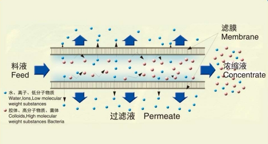 ? 中空微管膜為內(nèi)壓膜(流體流向由內(nèi)到外 ),采用錯(cuò)流式的物理過(guò)濾方式。