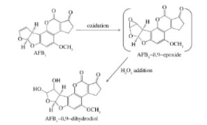 作用于黃曲霉毒素B1毒性結(jié)構(gòu)的雙呋喃8,9烯醚鍵,將黃曲霉毒素B1氧化后分解轉(zhuǎn)化成無(wú)毒物質(zhì)。