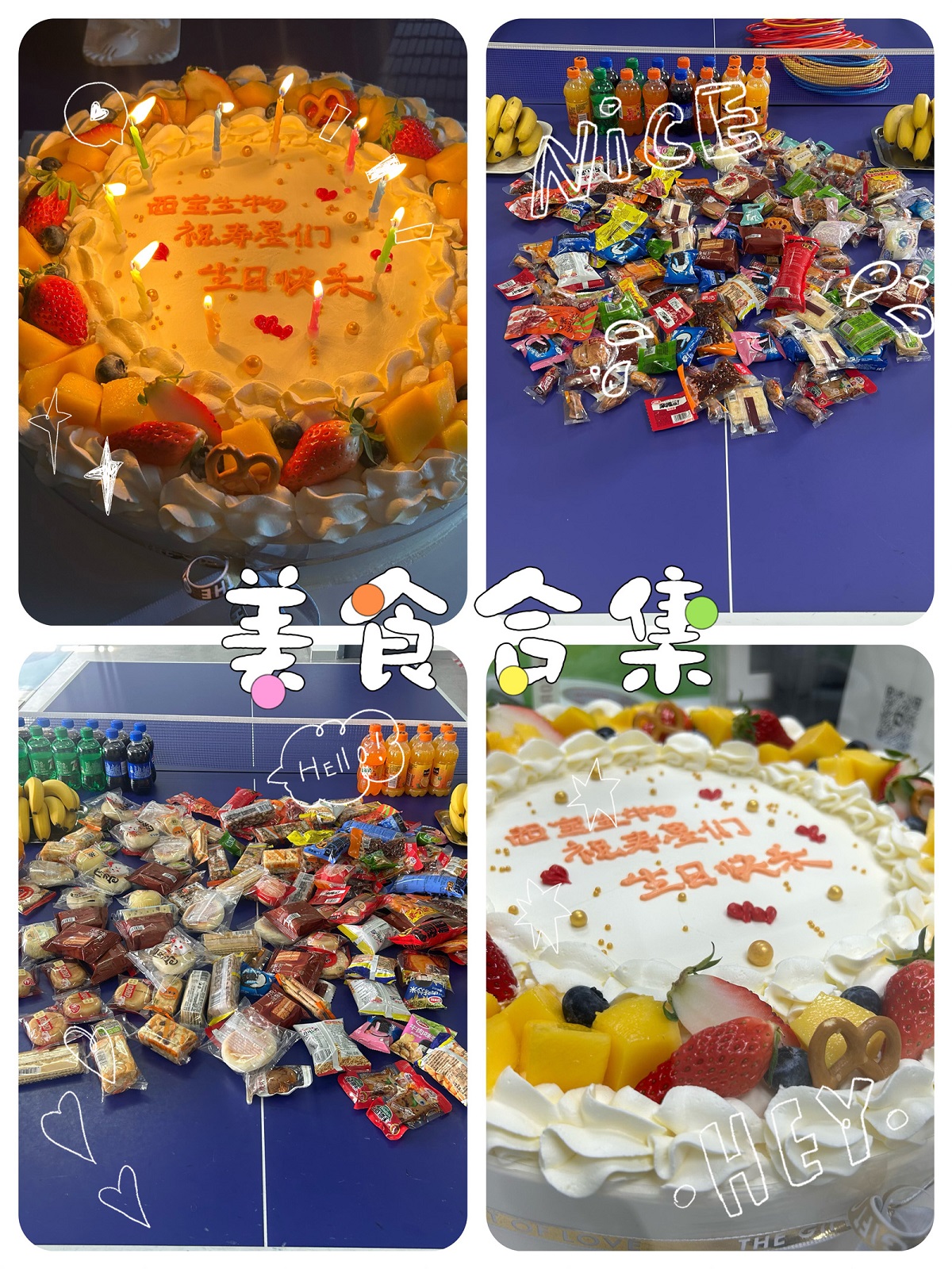 生日會現(xiàn)場,公司為大伙準備了琳瑯滿目的零食、飲料、新鮮水果,還有誘人的生日蛋糕。壽星們圍聚蛋糕旁,在全場溫馨的祝福歌聲中,一同許下美好的生日愿望,隨后在眾人的歡呼聲里吹滅蠟燭,共同分享這份甜蜜,感受集體慶生的溫暖。