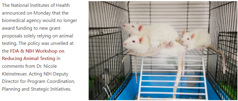 今年七月,美國國立衛(wèi)生研究院(NIH)在與美國食品藥品監(jiān)督管理局(FDA)聯(lián)合舉辦的研討會上宣布了一項歷史性決策:不再資助僅依賴動物試驗的新研究項目,所有新的NIH資助機會都應納入新方法的考量。這一決策標志著跨越近一個世紀的動物試驗主導時代迎來終結(jié)。
