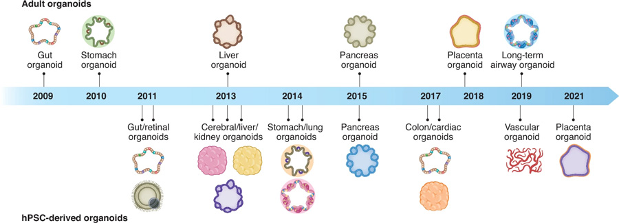 經(jīng)過十幾年的發(fā)展,越來越多的類器官模型被成功建立,包括成體干細胞來源以及誘導多能干細胞來源。