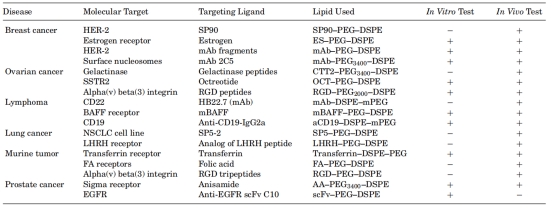 針對一些靶點(diǎn)被證明有效的PEG-Lipid體[7]: