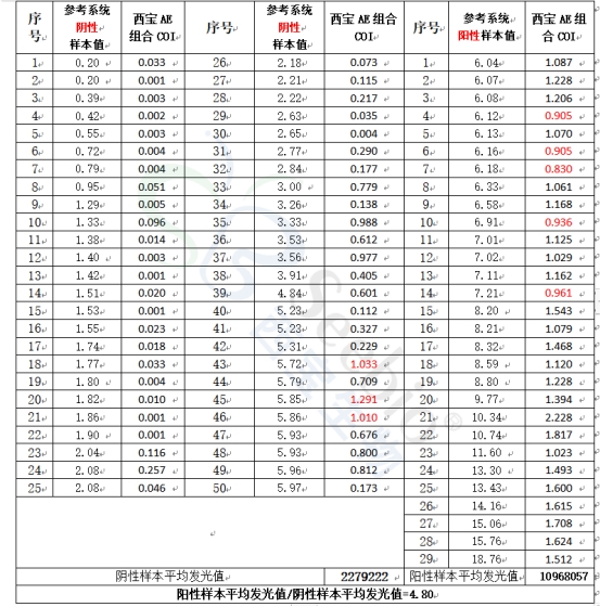 表1 西寶生物AE組合測(cè)試結(jié)果