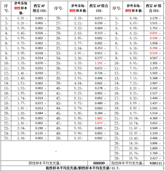 表2 西寶生物AP組合測(cè)試結(jié)果