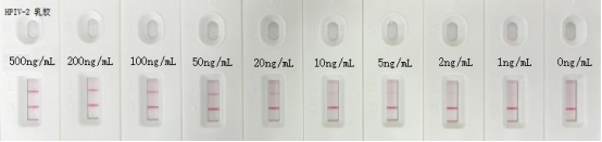 圖3 膠體金層析平臺測試HPIV-2抗原梯度示意圖